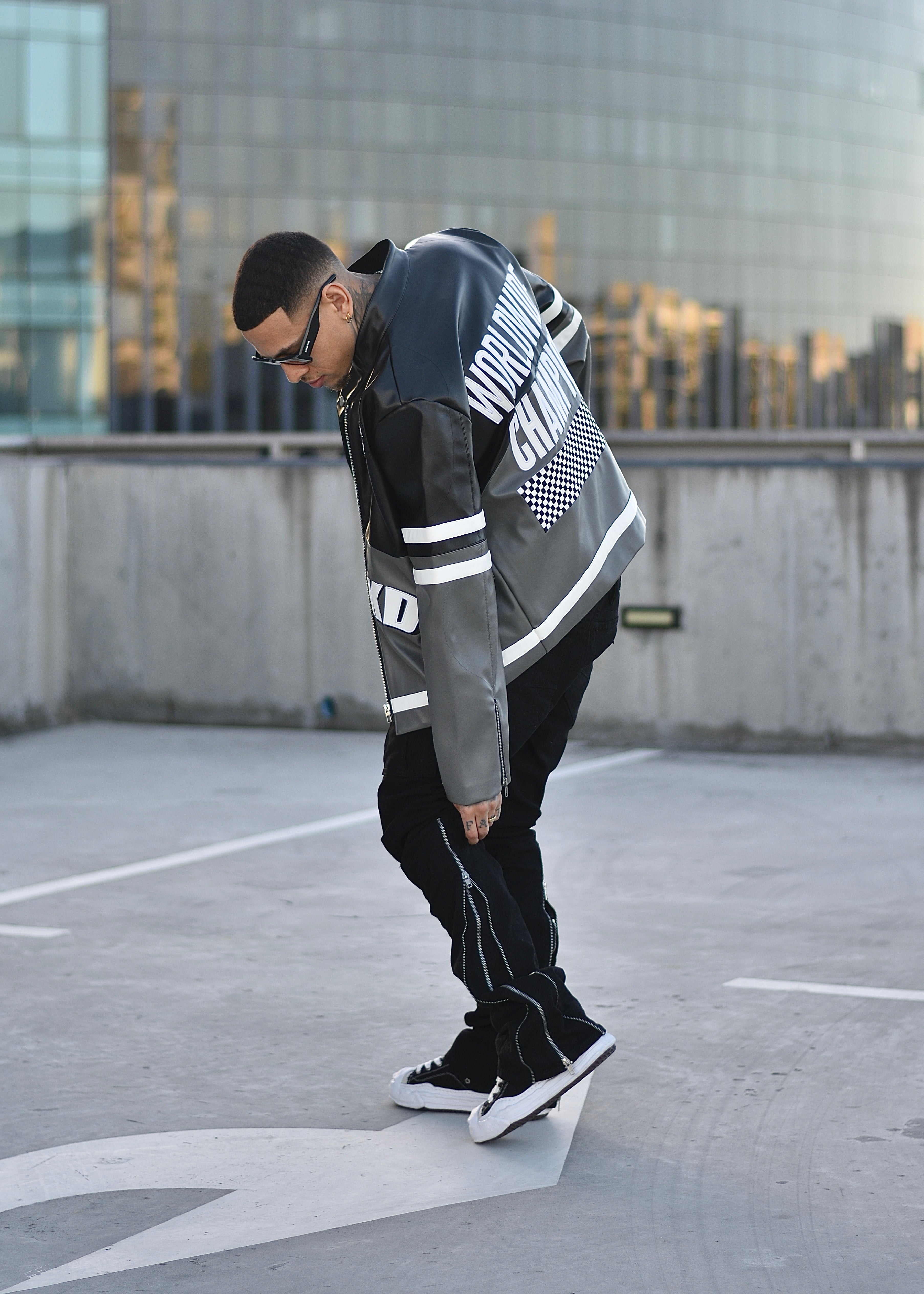 WC Leather Biker Jacket - Black/Grey