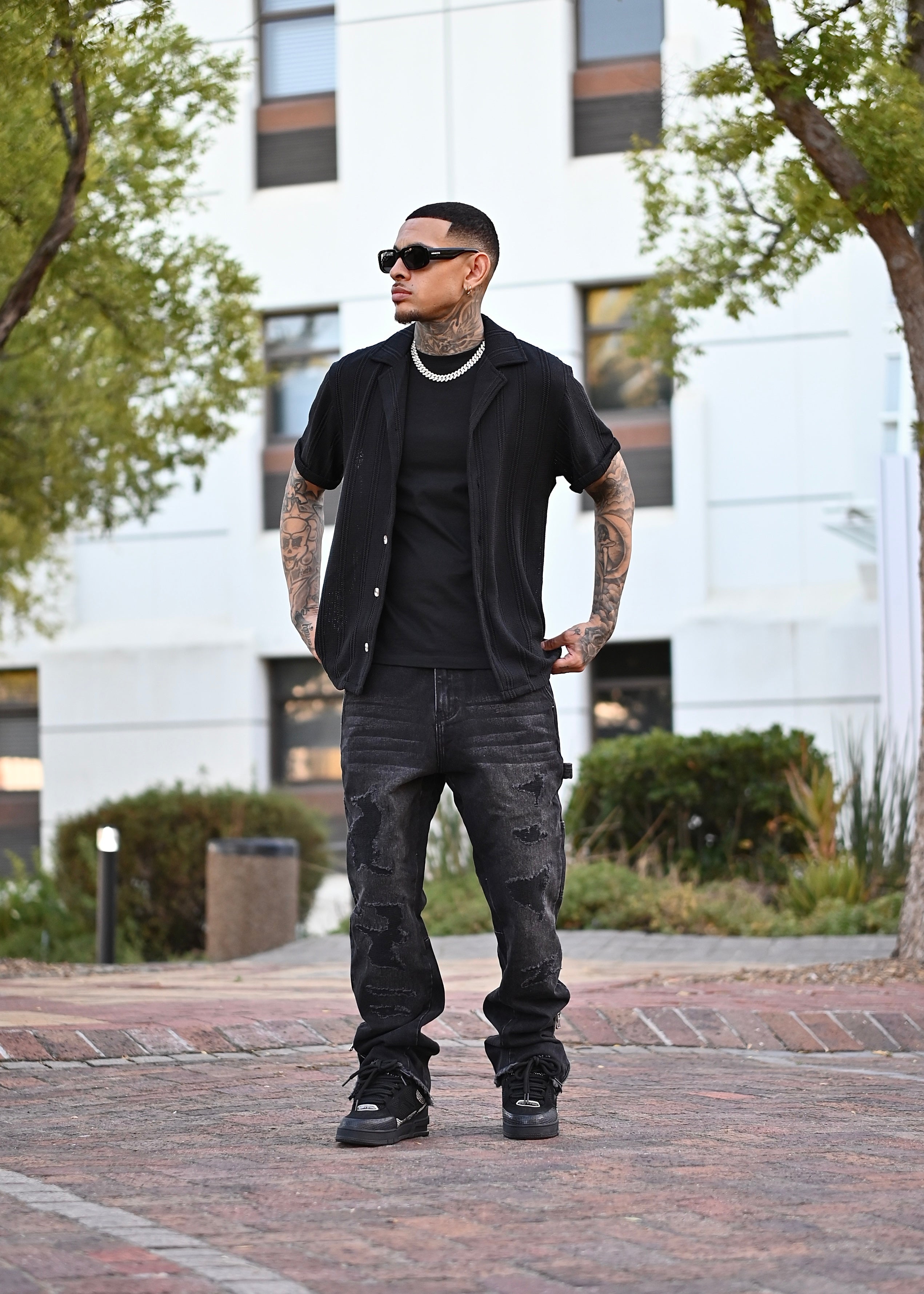 Bring edge to your everyday look with our washed Distressed carpenter Jeans — the perfect mix of rugged style and modern fit. Designed with intentional rips, fades, and frayed detailing, these jeans deliver that lived-in vibe without sacrificing durability or comfort.